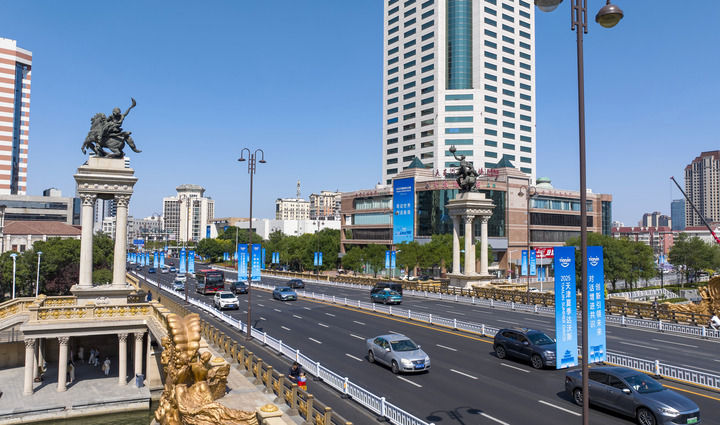 夏至已过,中国北方港口城市天津骄阳似火。一些道路的显要位置已经贴上了蓝色的道旗和标语,中英文对照的“夏季达沃斯”元素预告着一场盛会即将开启。